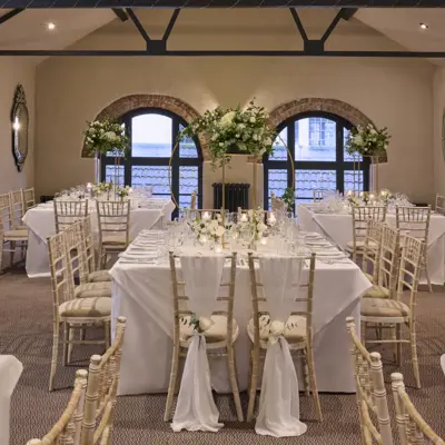 The Lombard is the largest of the rooms with capacity of 72 for a ceremony or wedding breakfast and 120 evening guests. It’s rustic vibe, with original window arches and beams add a touch of old style romance, whilst the outdoor terrace offers an intimate setting for a breath of fresh air.